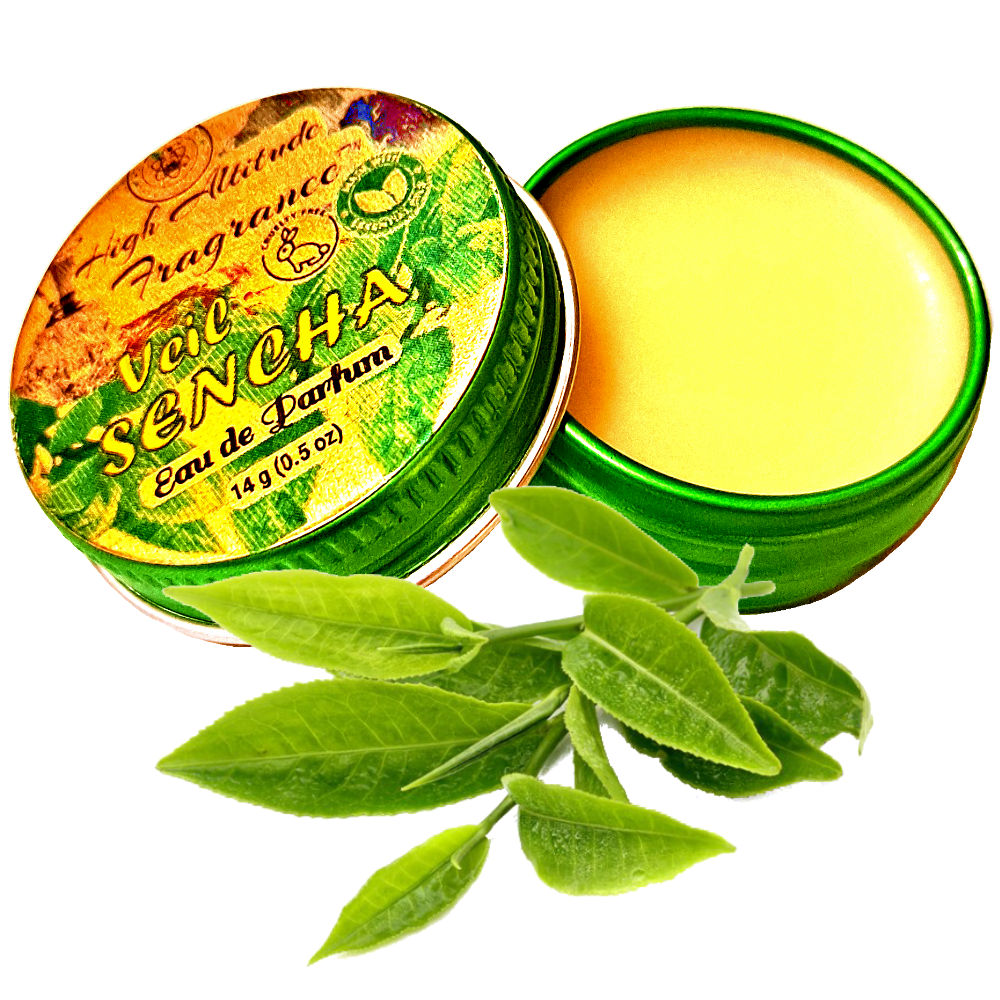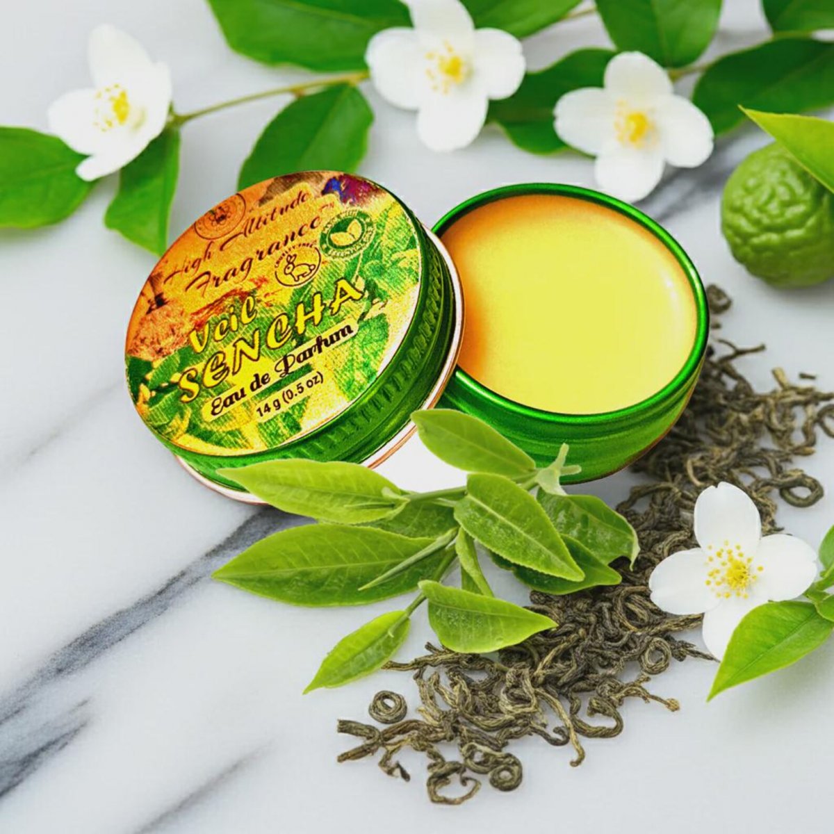 Sencha Veil™ is a green tea solid perfume designed for those seeking a clean, fresh, and realistic tea fragrance without sweetness or synthetic notes. It captures the scent of steeped sencha leaves, light citrus, and soft floral air in an alcohol-free balm that wears close to the skin.